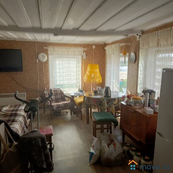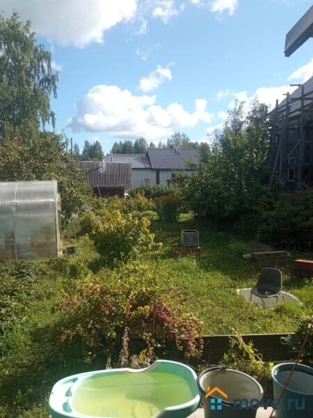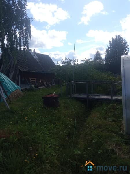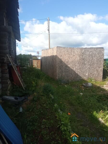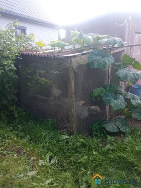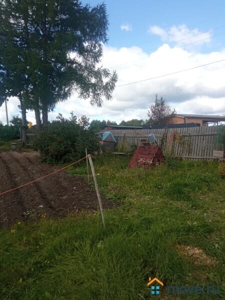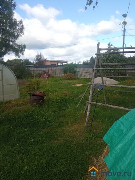 Территория 15 соток, на территории расположены навес для автомобиля, баня, хоз. постройки для животных, две теплицы, колодец. Плодовые деревья 3 яблони, кусты черноплодной рябины, малины, чёрной и красной смородины, крыжовник, клубника, хмель, облепиха. Часть территории разработана под посадку картофеля. Дом находится в сельском поселении и возможна прописка.